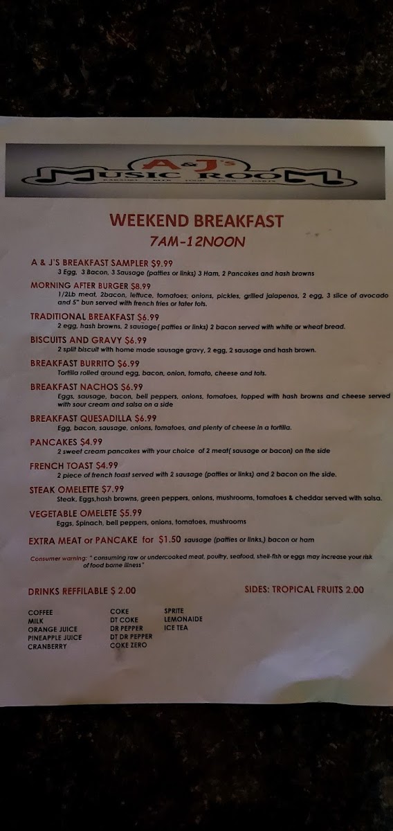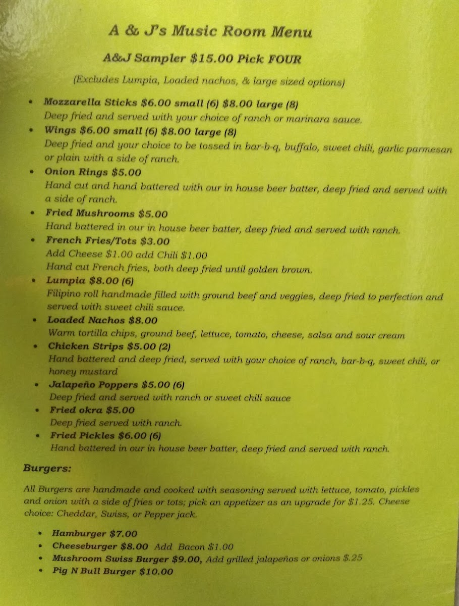 Welcome to A & J's Music Room Menu: A Culinary Symphony Awaits!